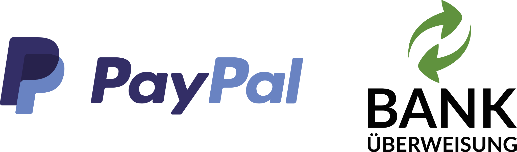 Die Bezahlung kann wahlweise per Banküberweisung oder per payPal erfolgen.